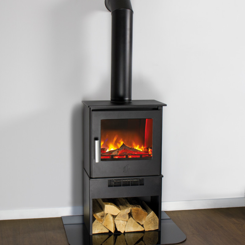 The Malvern Electric stove features contemporary styling and is the most compact stove in our electric range. It benefits from having flames at the front, back and the middle unlike most other electric stoves on the market. Constructed of high quality, lightweight steel and finished in durable black powder-coat finish, the Malvern Electric offers a choice of 1 and 2Kw heat output along with a no heat setting where you can just appreciate the relaxing flame effect – ideal for warmer evenings when just the atmosphere is flickering flames would be welcome. The incredibly realistic 3D holographic flame projection has 4 flame settings – high flame, medium flame, low flame and glowing embers. Our flame projection technology creates flames in the front, middle and back of the fire bed which with the addition of the optional blue flame, gives greater ambience and realism. The crystal embers and ceramic logs provide a natural, realistic look to the stove. The stove can be controlled from the unit itself or from the 7 day programmable intelligent remote which is supplied as standard. The stove can be programmed to come on automatically at different times of the day and the week and can be thermostatically controlled.